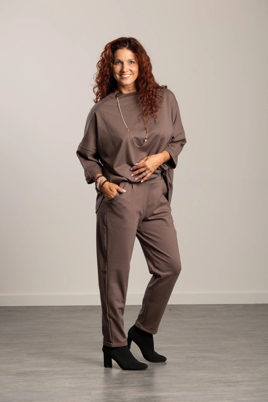 Tento Oversize TOP je ideální volbou pro každodenní pohodlí i styl. Jeho volnější střih poskytuje dostatek prostoru pro volný pohyb, zatímco elegantní "hodinkové" rukávy dodávají celému outfitu nádech originality a rafinovanosti. Díky volnějšímu střihu je TOP skvělý pro vrstvení a kombinaci s různými typy kalhot či sukní a plédů. Barva: hnědá