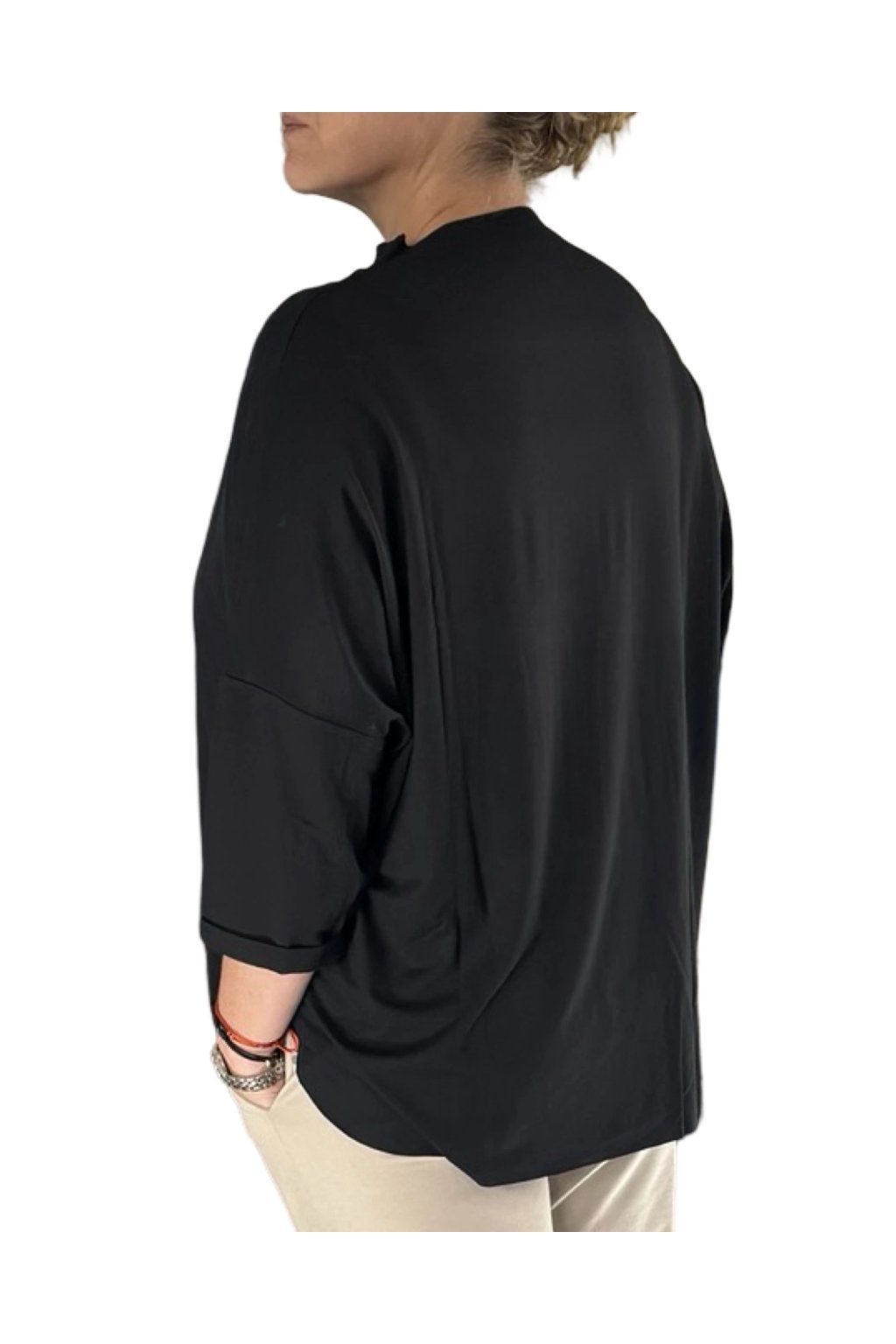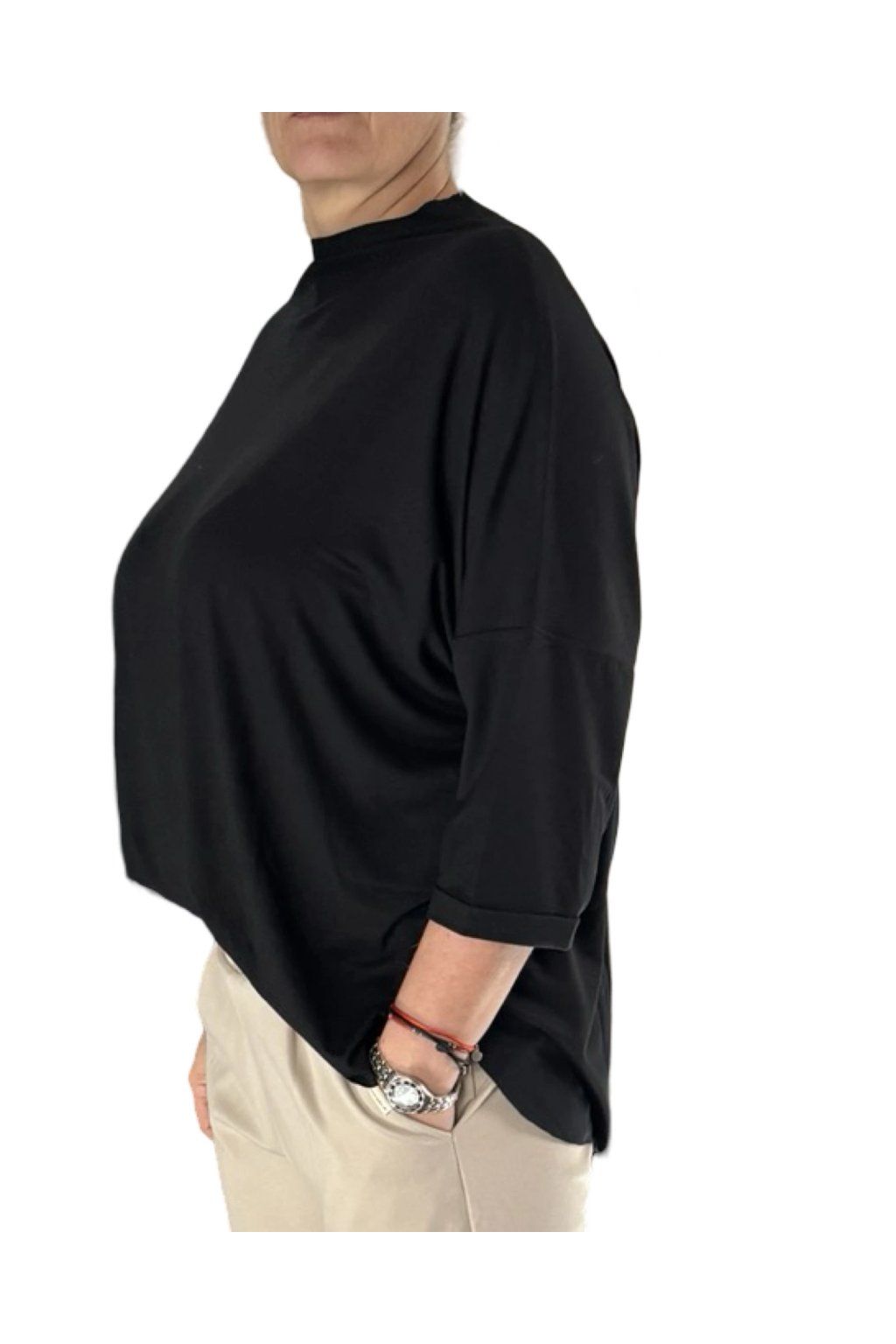 Tento Oversize TOP je ideální volbou pro každodenní pohodlí i styl. Jeho volnější střih poskytuje dostatek prostoru pro volný pohyb, zatímco elegantní "hodinkové" rukávy dodávají celému outfitu nádech originality a rafinovanosti. Díky volnějšímu střihu je TOP skvělý pro vrstvení a kombinaci s různými typy kalhot či sukní.