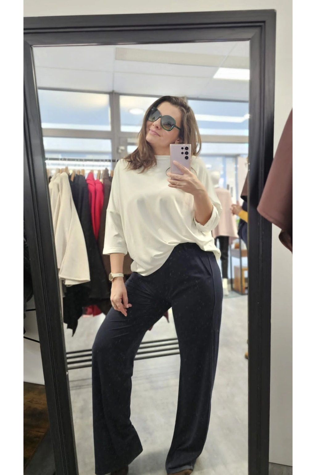 - Oversize střih: Poskytuje pohodlí a ležérní eleganci, kterou můžete nosit celý den.