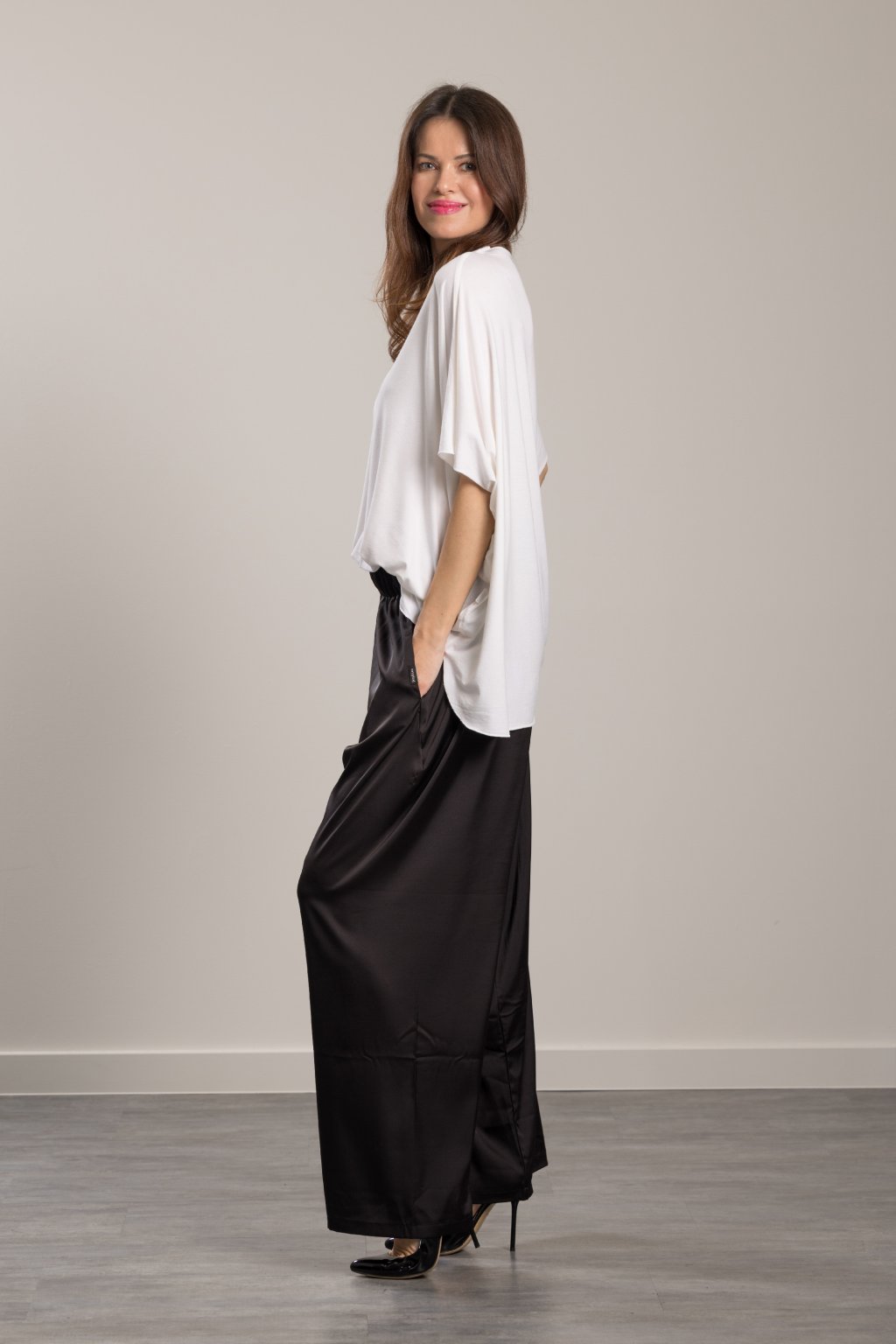 Elegantní kalhoty Sara Silk Objevte dokonalou kombinaci elegance a pohodlí s našimi saténovými kalhotami Sara Silk. Dlouhé široké splývavé kalhoty pro nadčasový...