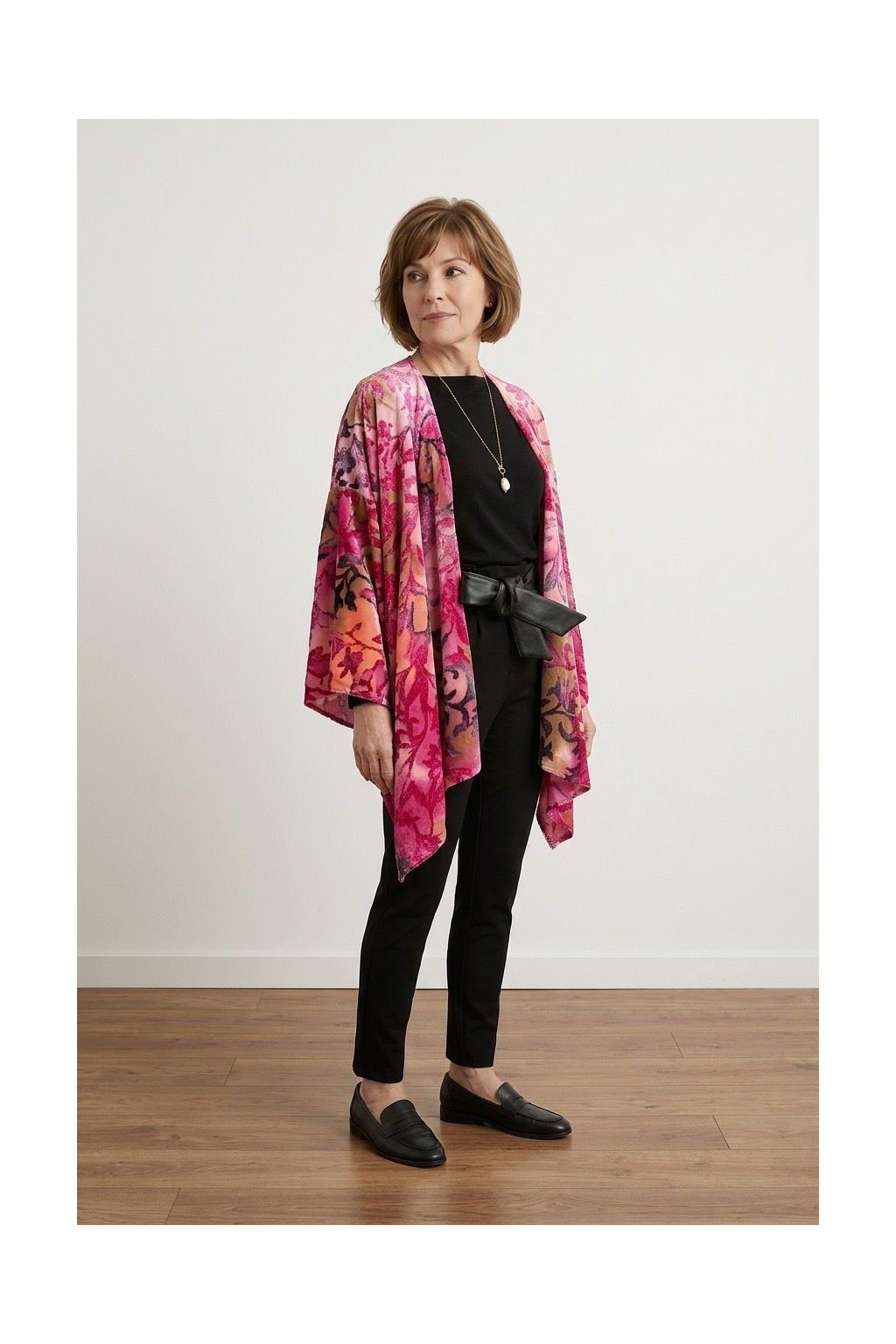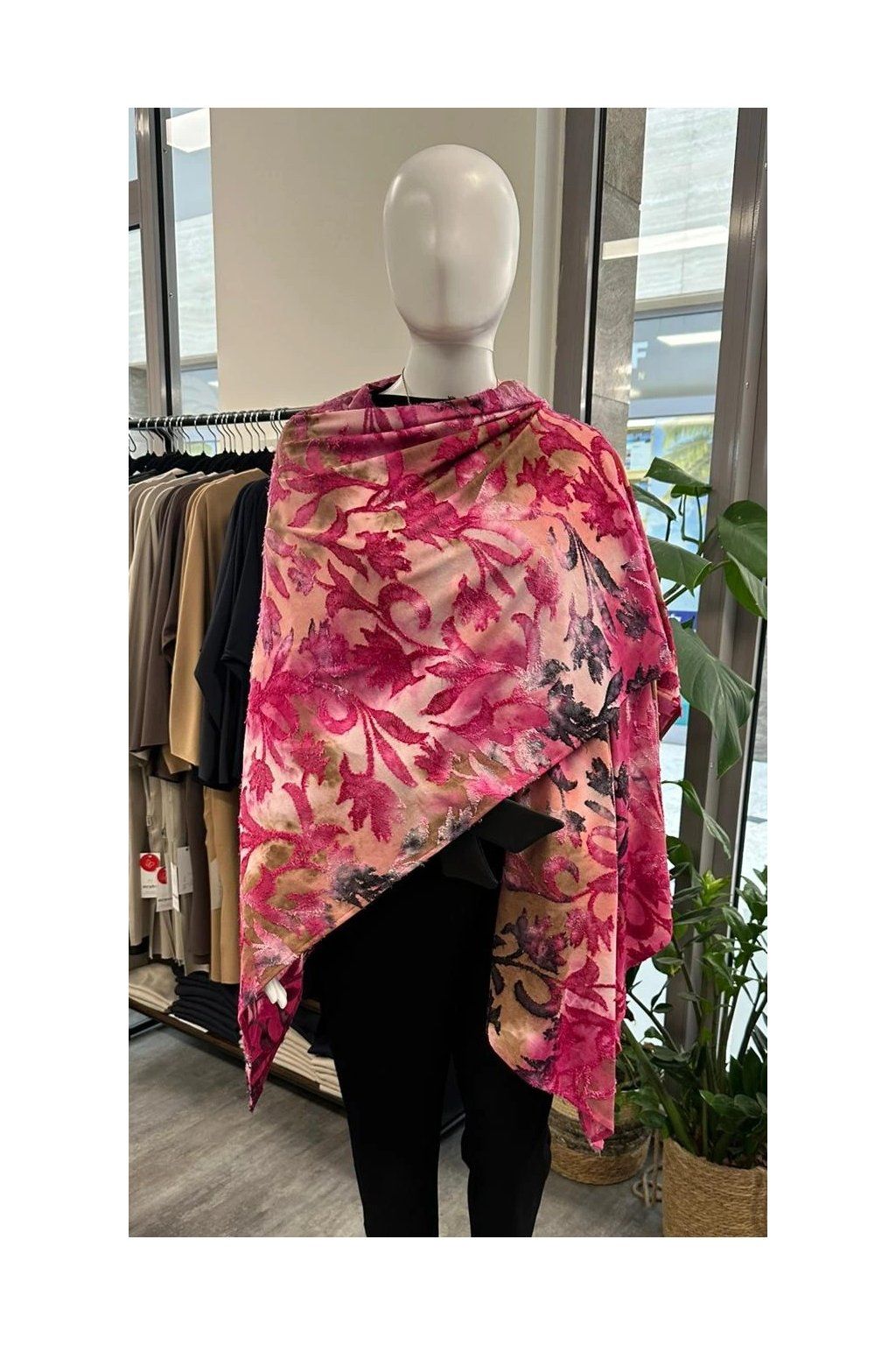 Tento velký letní pléd je navržený jako výrazný doplněk, který během okamžiku promění celý outfit. Vícebarevný vzor a jemná struktura dodávají materiálu hloubku a přirozený...