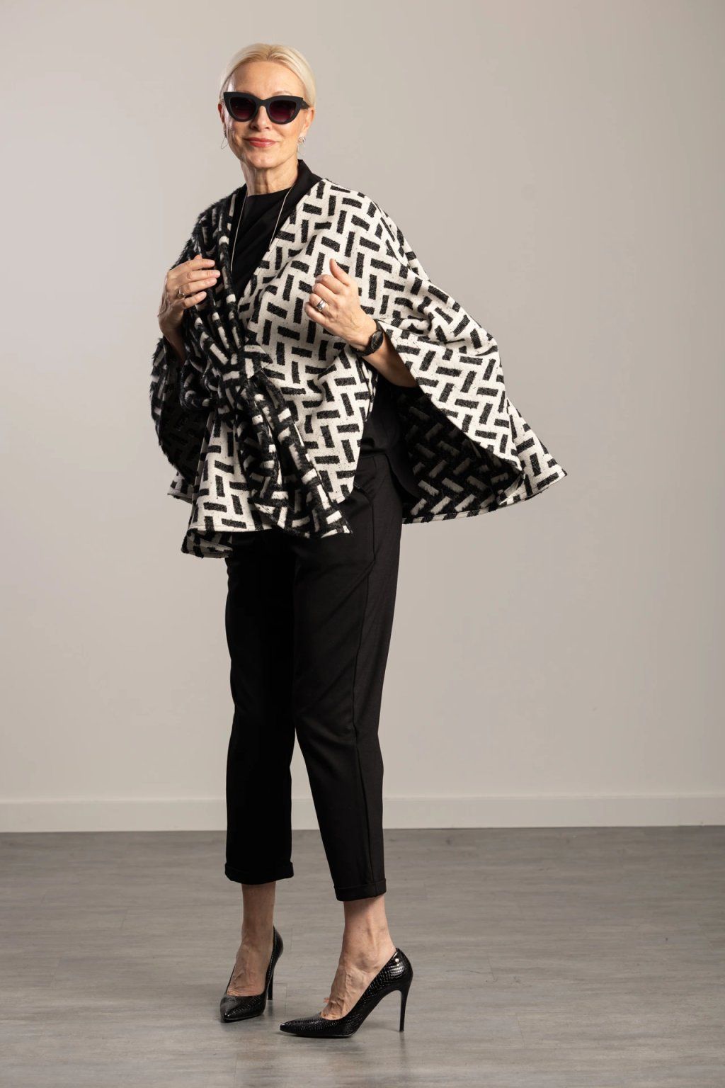 Pléd Bird je elegantní kabátkový pléd, který zvládne chladná rána i pozdní večery. Kulaté cípy jemně zjemňují siluetu, přední úchyt elegantně udrží pléd na místě a dodá mu čistou linii – bez přepásání a bez sklouzávání z ramen. Přehodíte, provléknete a jdete: do kanceláře, na procházku i na večeři. Nadčasový kousek, který snadno sladíte s tím, co už máte ve skříni.