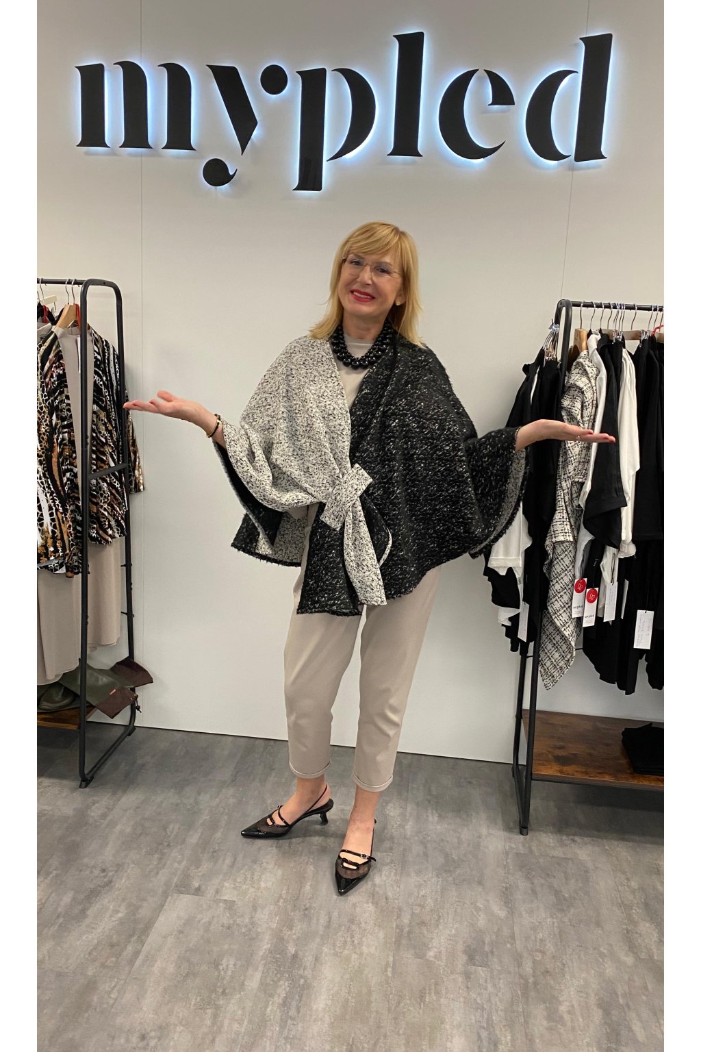 Pléd Bird je elegantní kabátkový pléd, který zvládne chladná rána i pozdní večery. Kulaté cípy jemně zjemňují siluetu, přední úchyt elegantně udrží pléd na místě a dodá mu čistou linii – bez přepásání a bez sklouzávání z ramen. Přehodíte, provléknete a jdete: do kanceláře, na procházku i na večeři. Nadčasový kousek, který snadno sladíte s tím, co už máte ve skříni.