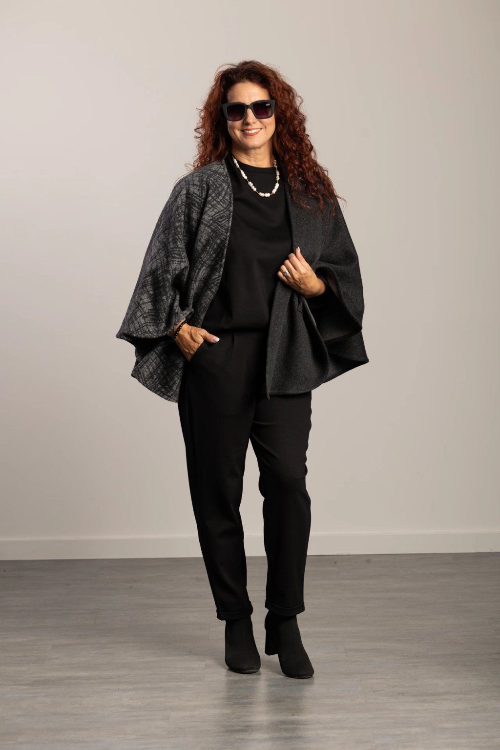 Pléd Bird je elegantní kabátkový pléd, který zvládne chladná rána i pozdní večery. Kulaté cípy jemně zjemňují siluetu, přední úchyt elegantně udrží pléd na místě a dodá mu čistou linii – bez přepásání a bez sklouzávání z ramen. Přehodíte, provléknete a jdete: do kanceláře, na procházku i na večeři. Nadčasový kousek, který snadno sladíte s tím, co už máte ve skříni.