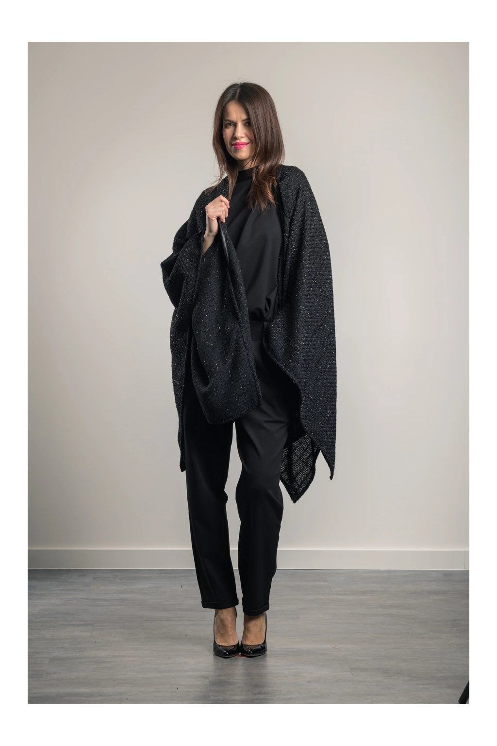 Představte si kousek oblečení, který je nejen nadčasově elegantní, ale také neuvěřitelně univerzální a praktický. To je Madam Coco Black – pléd cípatého střihu, který překonává běžné módní trendy a stává se neodmyslitelnou součástí šatníku každé ženy, která si váží kvality a stylu.
