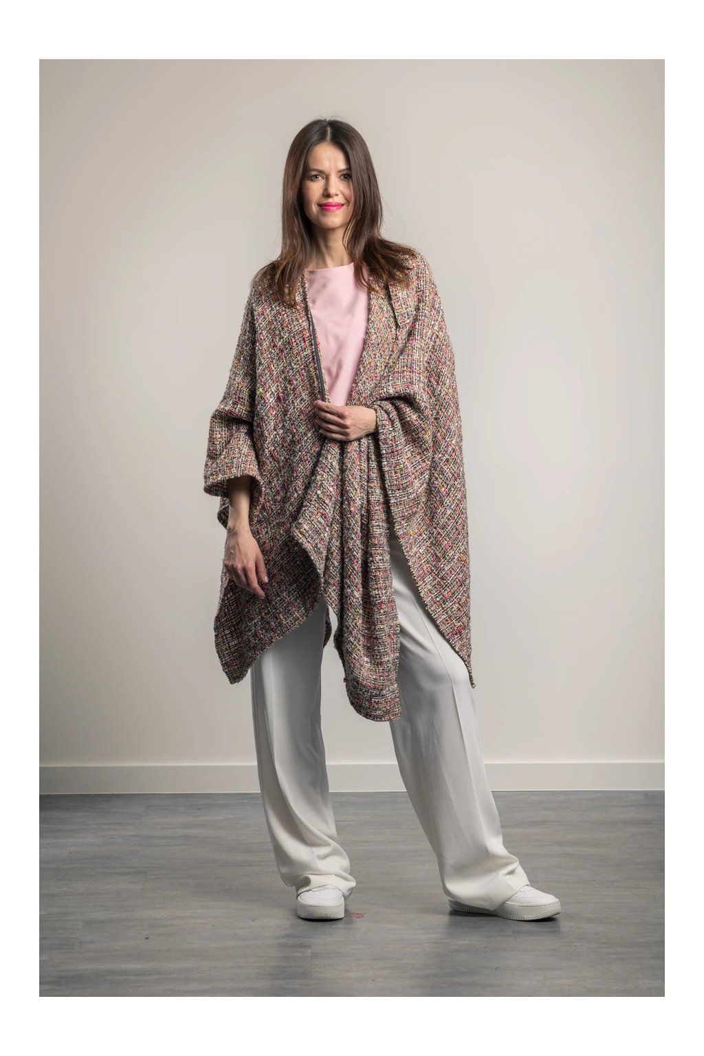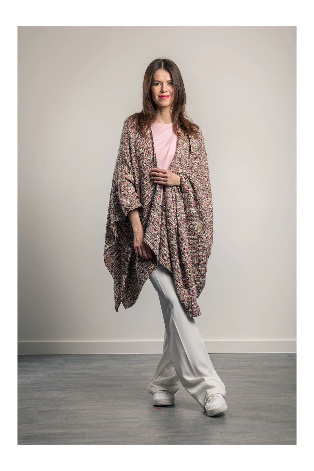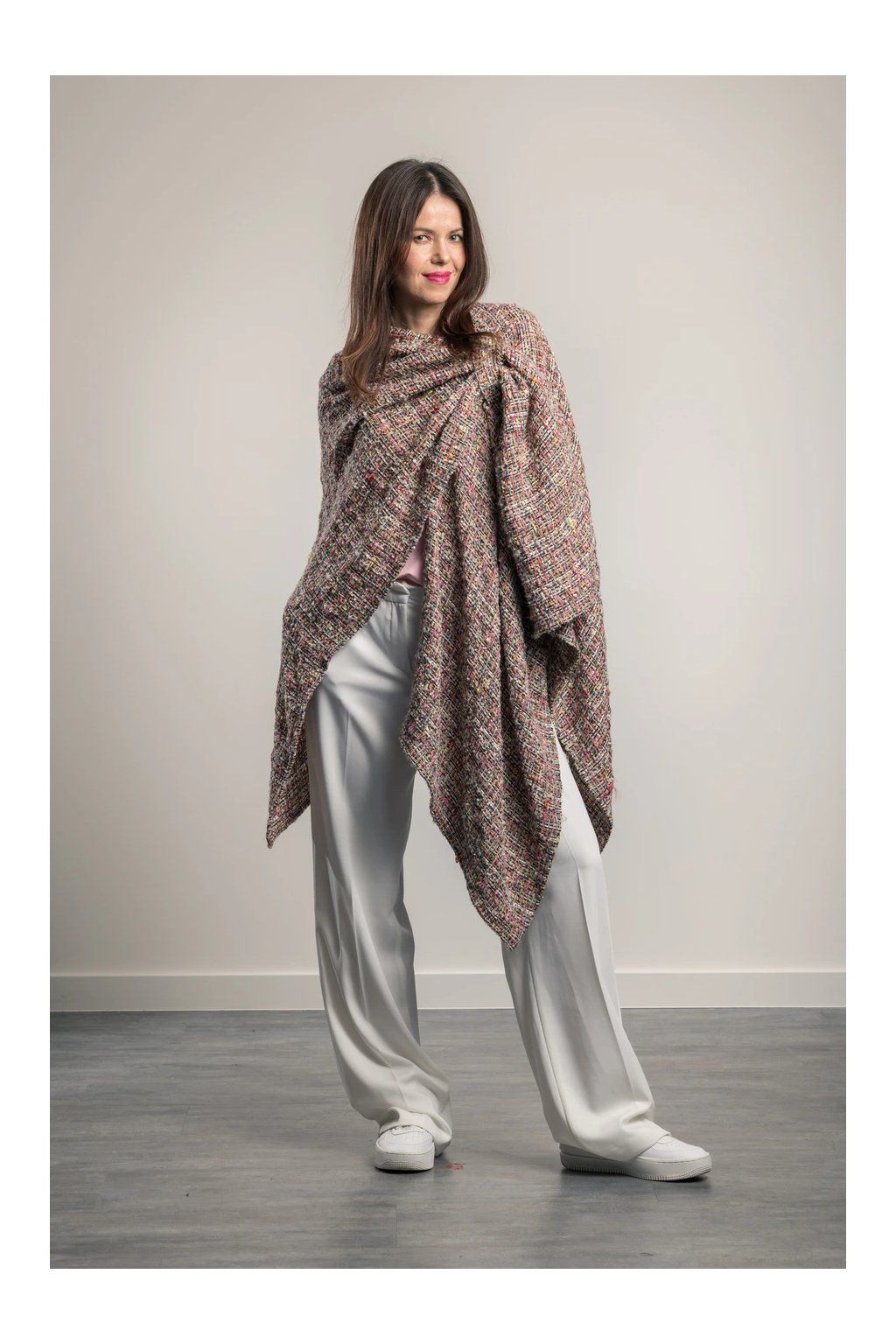 Jak často jste se potýkali s hledáním ideálního kousku, který by nahradil sako či kabátek? Madam Coco Meadow přináší řešení, které vás nikdy nezklame. Jeho cípatý střih elegantně kopíruje vaše křivky a poskytuje dokonalou krytí, aniž by se mačkal. Už žádné kompromisy mezi pohodlím a stylem – tento pléd je odpovědí na vaše módní dilema.