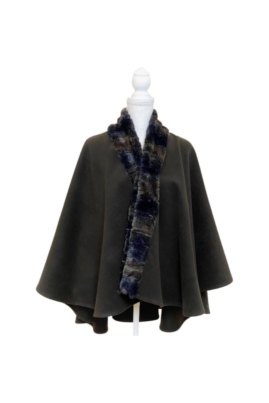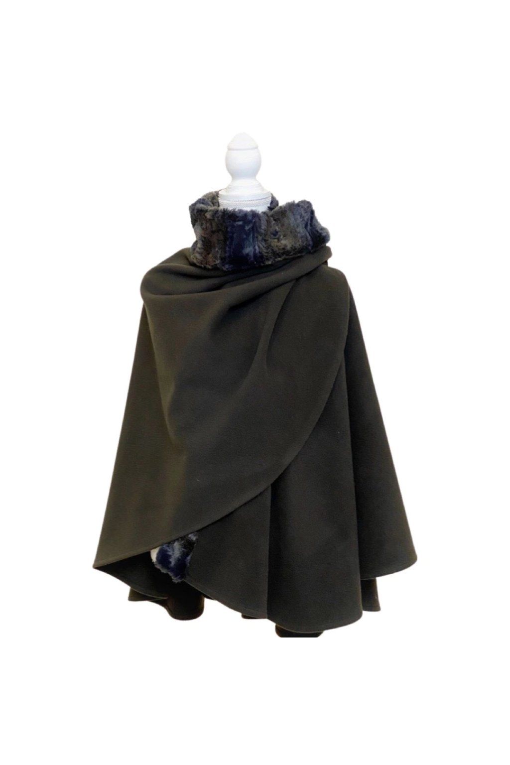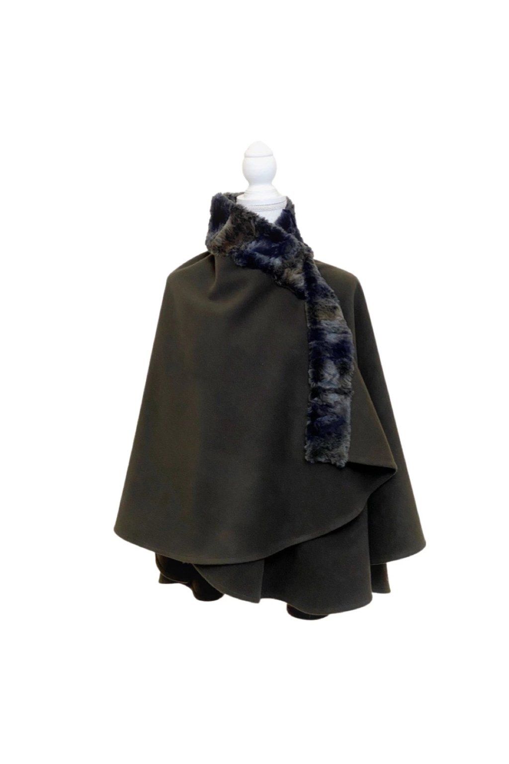 Velmi elegantní zimní kašmírový pléd s umělou kožešinou typu perzián, který zcela nahradí zimní kabát. Zvednutý límec u krku pro zachumlání. Zapínání na patent. Jedinečný pléd pro společenské události i pro klasickou eleganci.