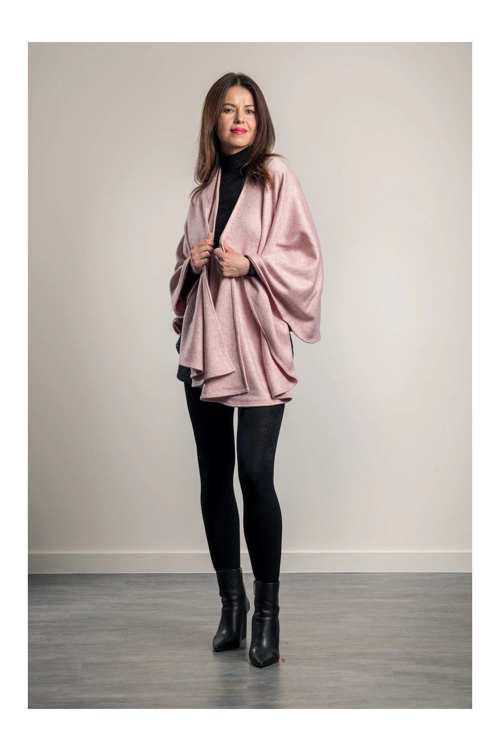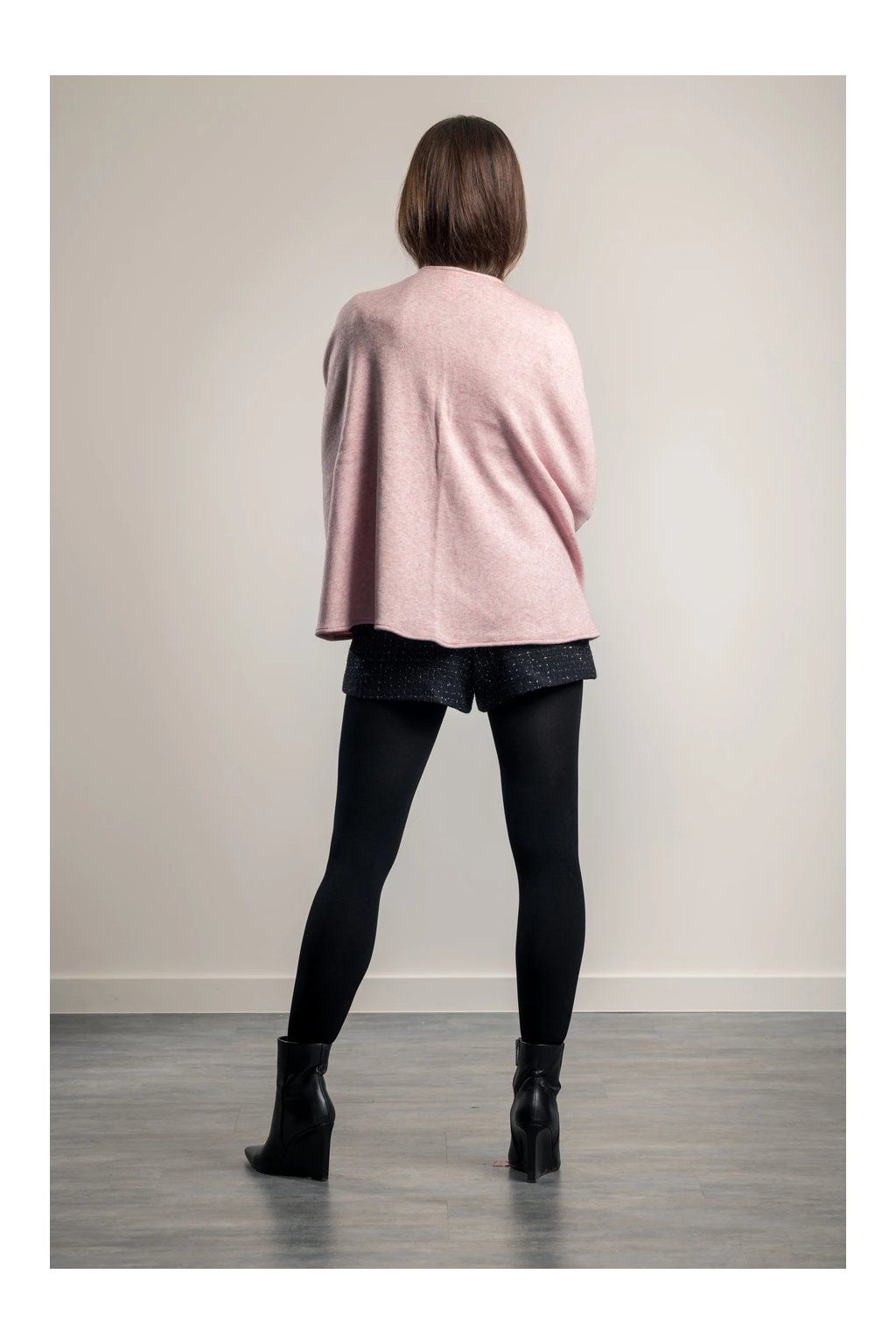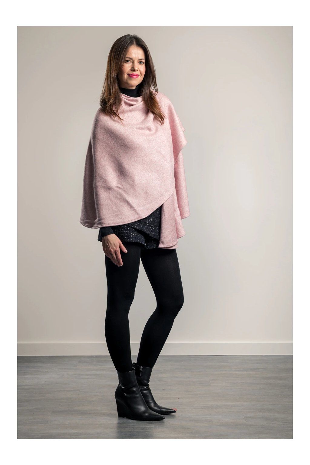 Elegantní svetrový pléd z velmi kvalitní italské pleteniny. Nabízí mnoho variant nošení plédu a to nejen v rámci společenských, ale volnočasových aktivit. Nemačká košili jako např. sako. Pléd naopak sako zcela nahradí, stejně jako nahradí třeba pončo nebo kabátek. Lze jej nosit i v zimě do kabátu místo velké šály, v interiéru pak nahradí svetr či cardigan. Perfektně ladí i k džínám, kožené bundě i elegantnímu outfitu. Barva: světle růžová.