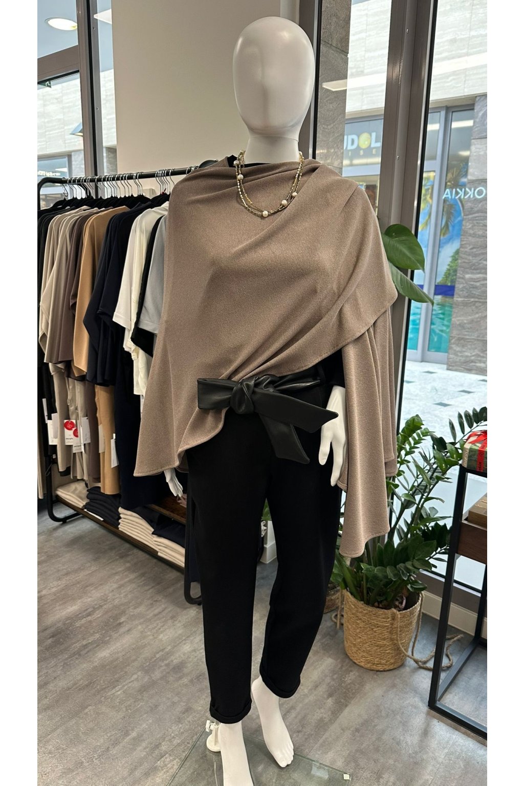 Univerzální styl – noste ho volně přes ramena, jako šálu nebo ležérně přepásaný.