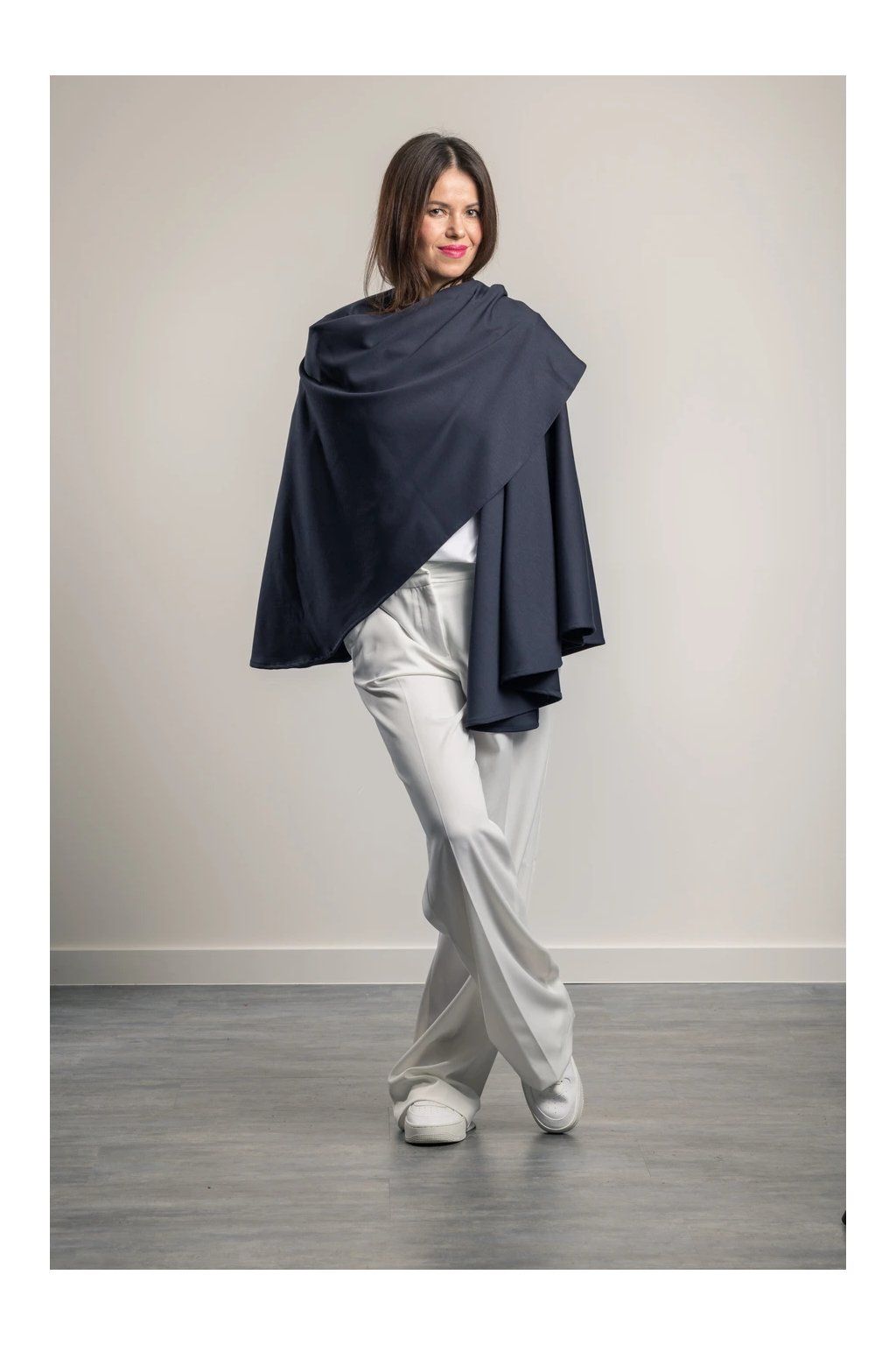 Jeho unikátní střih je kratší a kulatější než u běžných plédů, což ho dělá ideálním pro ženy se sedavým zaměstnáním, které chtějí mít záda, ramena a boky v teple. Navíc díky svému speciálnímu střihu krásně drží, nepadá a nemačká oblečení, takže vám dodá elegance v okamžiku.