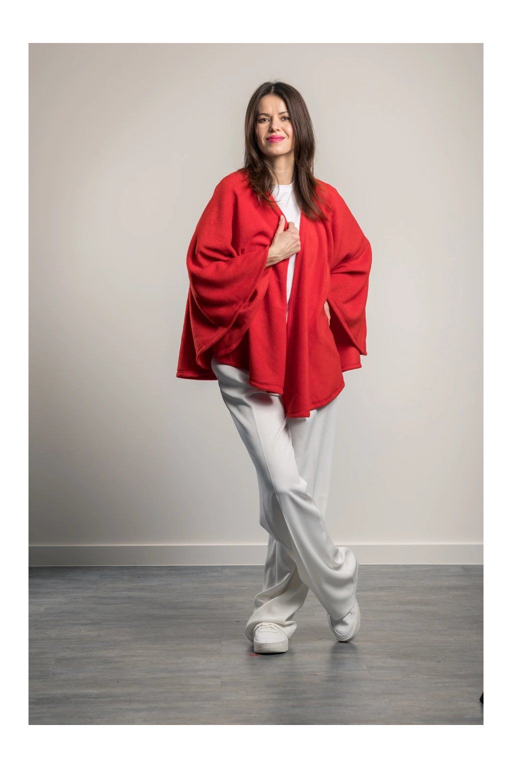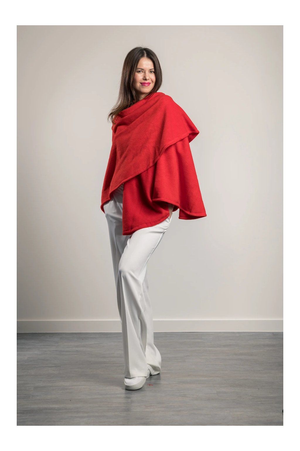 Jeho unikátní střih je kratší a kulatější než u běžných plédů, což ho dělá ideálním pro ženy se sedavým zaměstnáním, které chtějí mít záda, ramena a boky v teple. Navíc díky svému speciálnímu střihu krásně drží, nepadá a nemačká oblečení, takže vám dodá elegance v okamžiku.