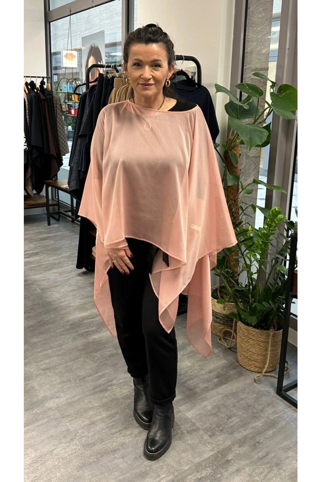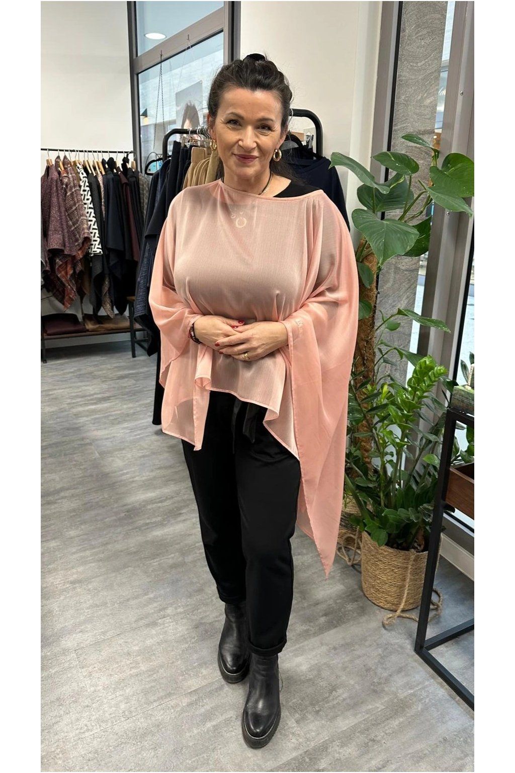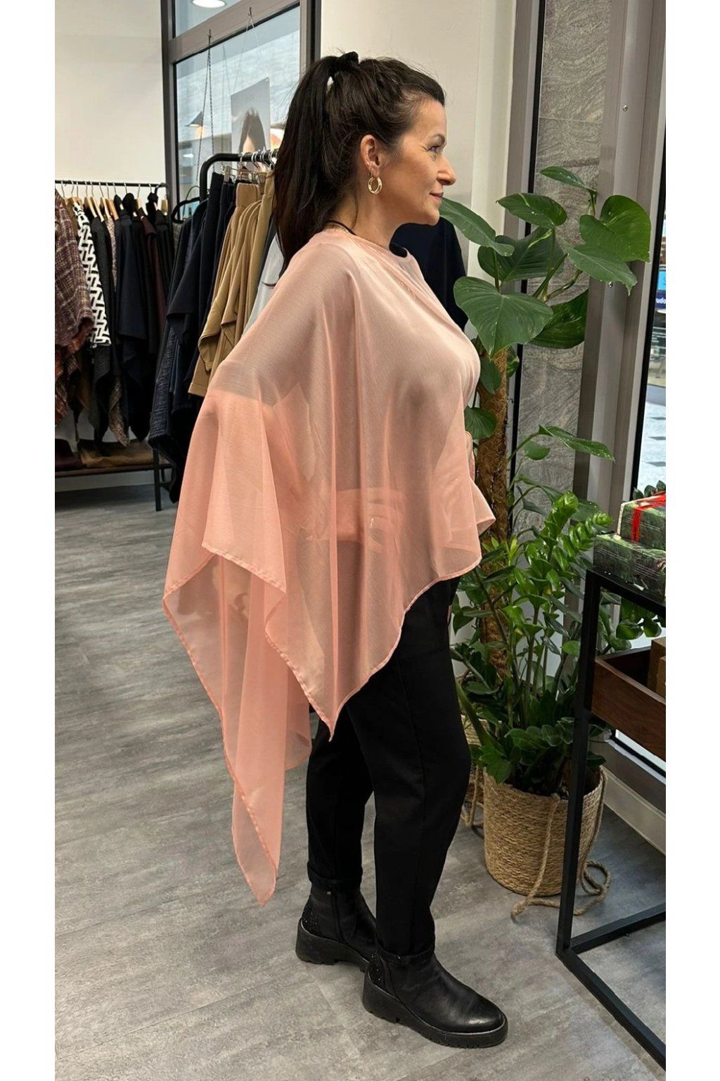 Elegantní dámské pončo vhodné do společnosti i na bežné nošení. Krásně doplní outfit a dá se nosit přes šaty, ale i ke kalhotám či plavkám. Velmi originální střih, který sluší každé postavě. Průhledné, lehké.