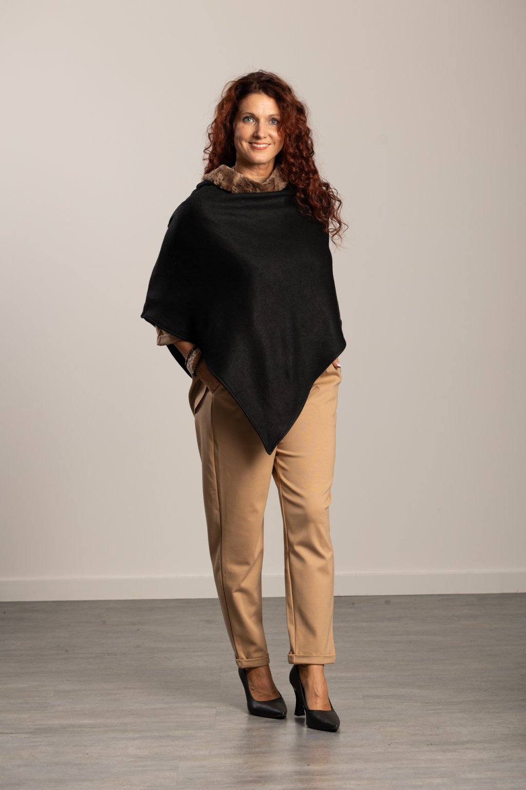 Toto stylové pončo je ušito z kvalitní italské pleteniny a doplněno lemem z hebké eko kožešiny, která mu dodává luxusní nádech. Díky jemným materiálům je neuvěřitelně příjemné na dotek – zahřeje a zároveň pohladí po těle i po duši. Pončo krásně splývá, zakryje drobné nedostatky a lichotí každé postavě.