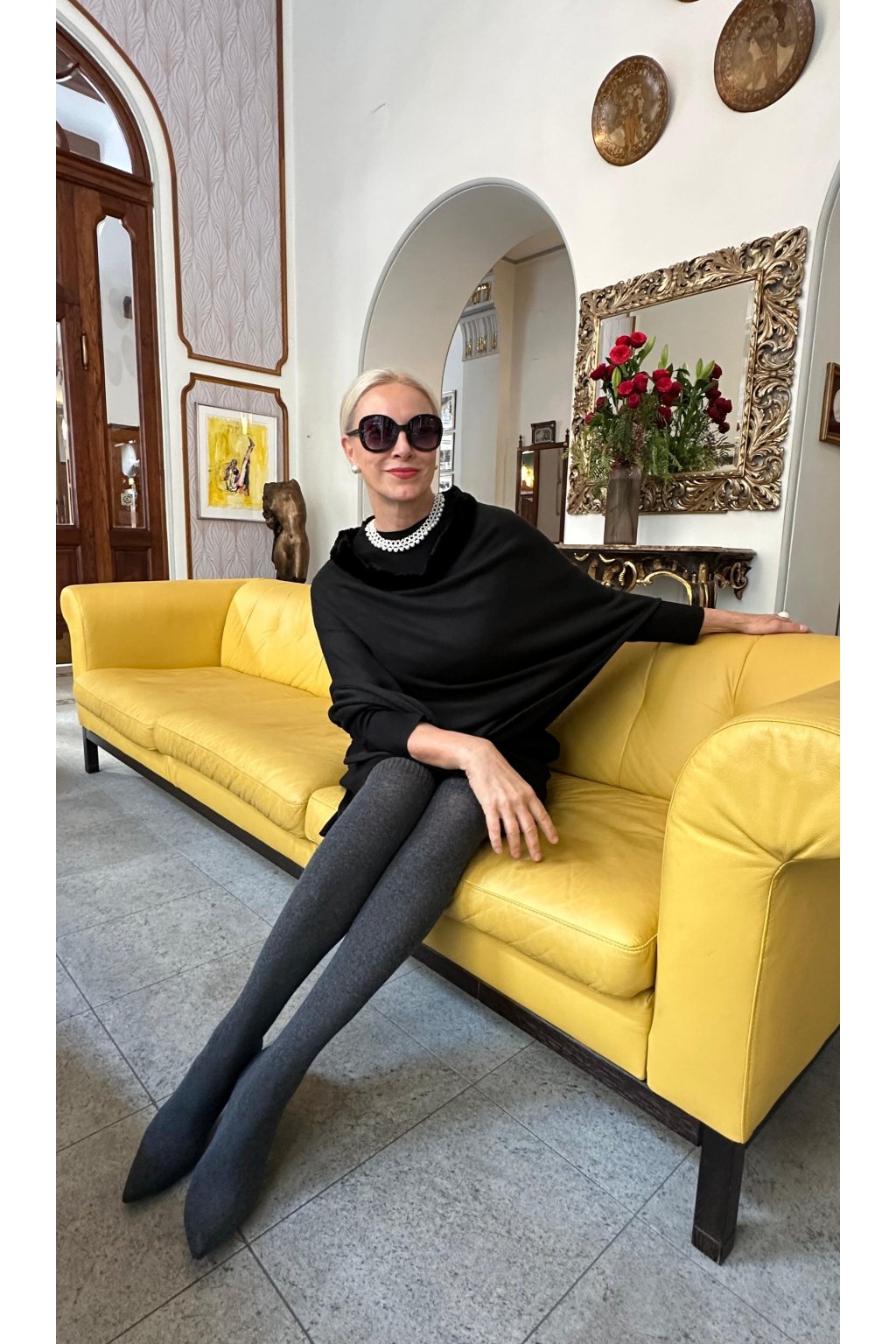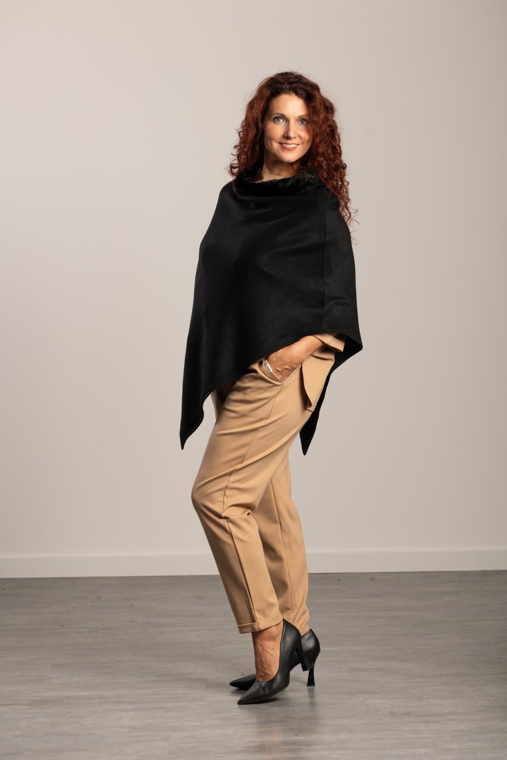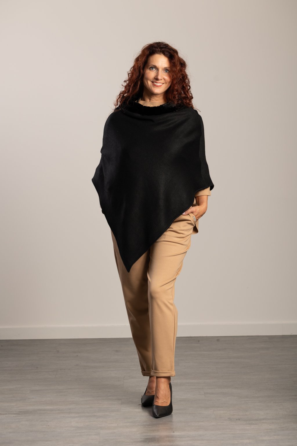 Toto stylové pončo je ušito z kvalitní italské pleteniny a doplněno lemem z hebké eko kožešiny, která mu dodává luxusní nádech. Díky jemným materiálům je neuvěřitelně příjemné na dotek – zahřeje a zároveň pohladí po těle i po duši. Pončo krásně splývá, zakryje drobné nedostatky a lichotí každé postavě.