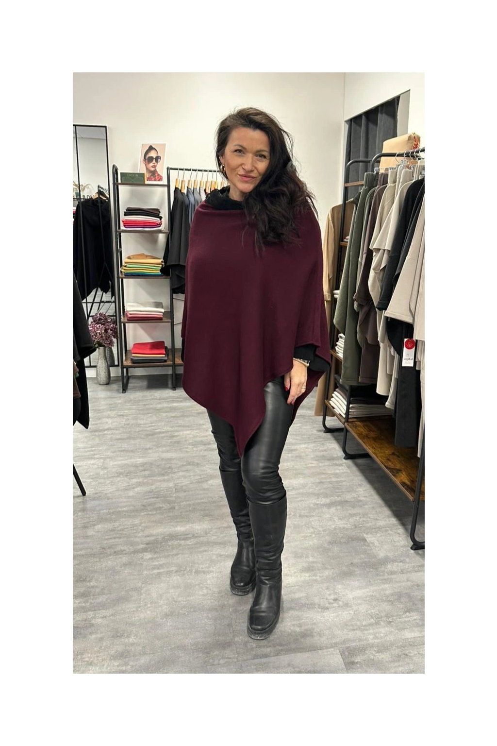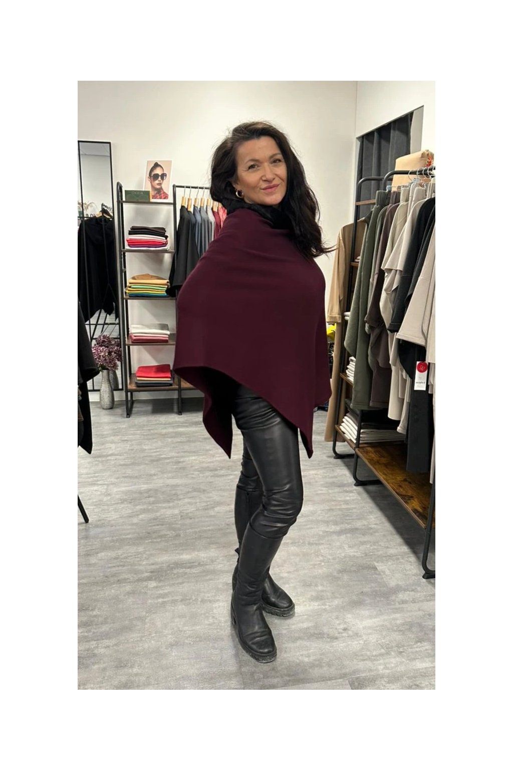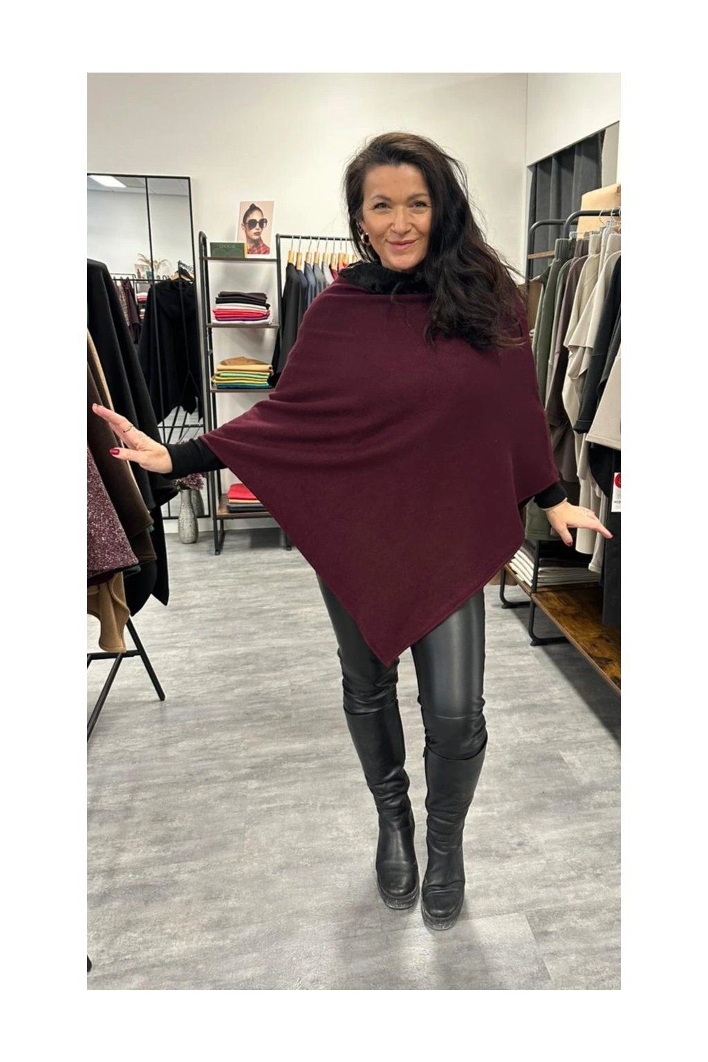 Pončo Stella Burgundy Raven Elegantní dámské pončo