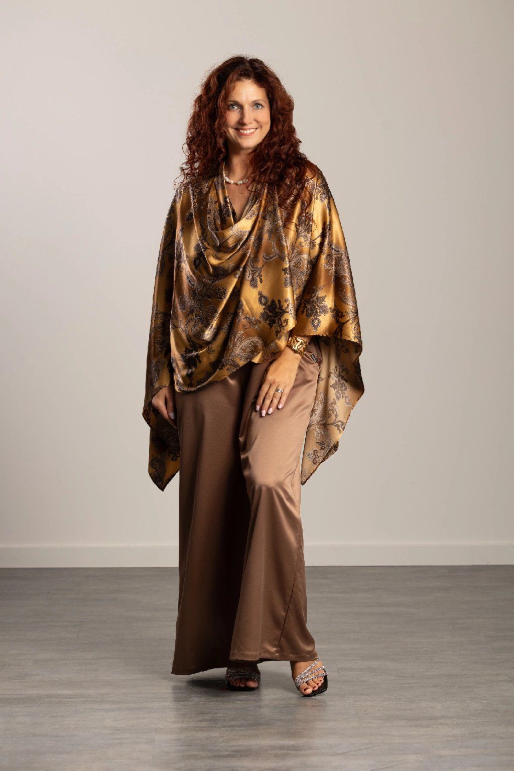 Decentní saténový lesk – plynule splývá, lichotí postavě a vypadá skvěle na fotkách i v pohybu.
