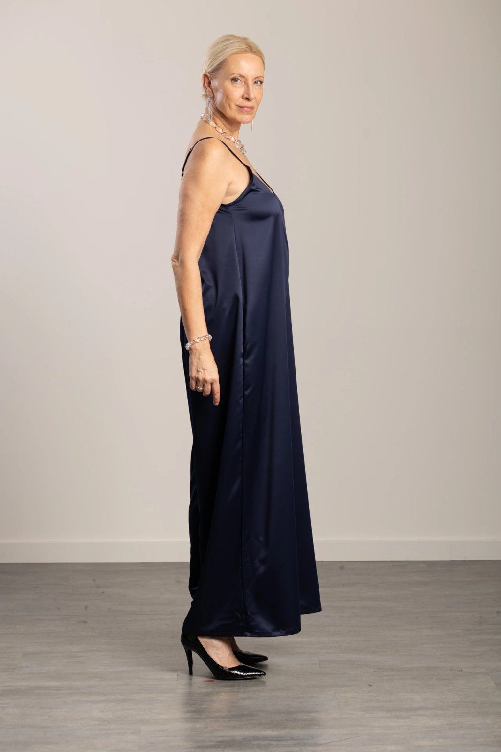 • Decentní saténový lesk – plynule splývá, lichotí postavě a vypadá skvěle na fotkách i v pohybu.