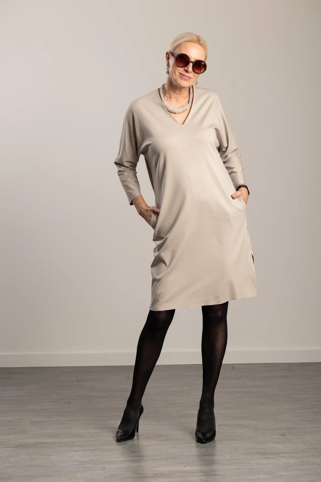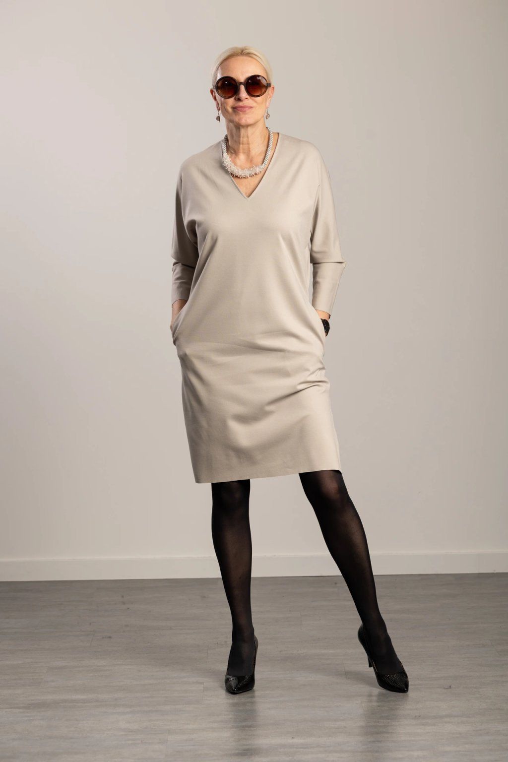 Šaty Viva mají délku těsně pod kolena, což z nich dělá ideální volbu jak pro formální, tak volnější příležitosti. Jejich volný a elegantní střih se přizpůsobí každé postavě a zajistí pohodlí po celý den. Praktické kapsy pak dodávají nejen styl, ale také funkčnost, kterou oceníte v každodenním shonu.