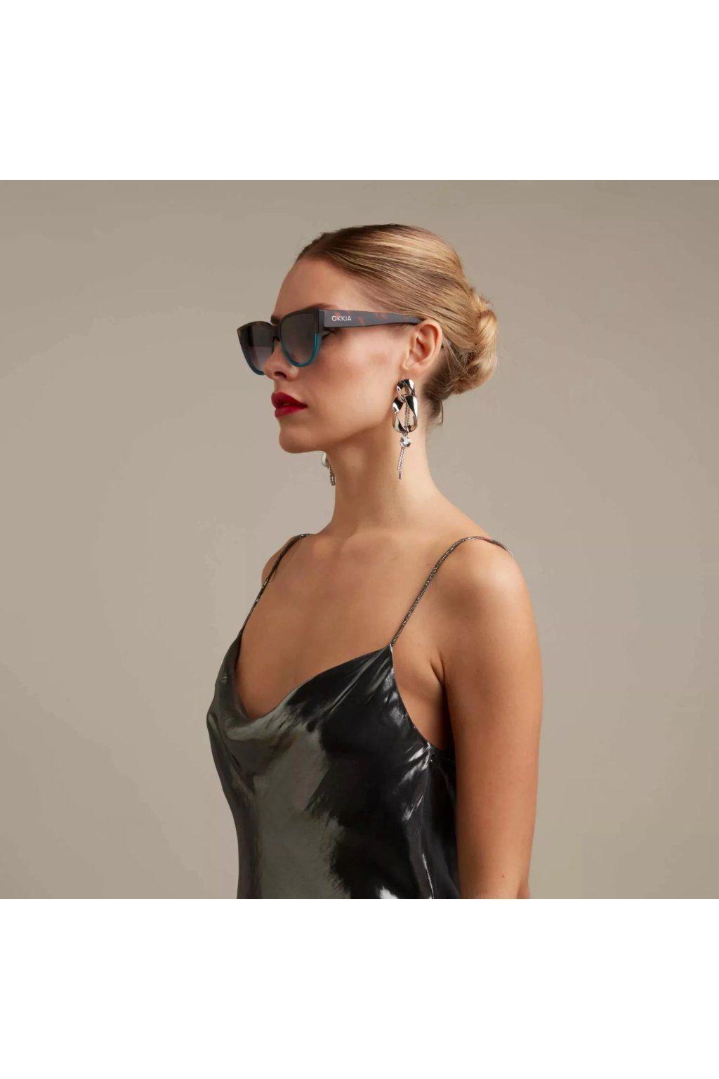 Elegantní brýle se zvednutými rohy přidávají na kouzlu a tajmeství. Svým soft touch povrchem a přechodovými čočkamy jsou tím správným doplňkem pro každý elegantní outfit. Barva obrouček Havana/modrá, čočky černé přechodové