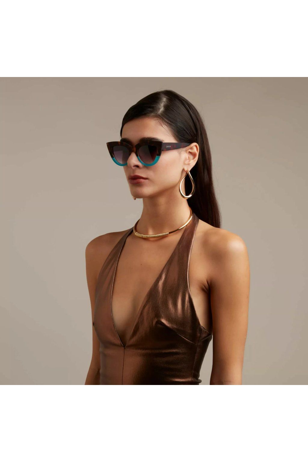 SILVIA Havana/blue Módní sluneční brýle