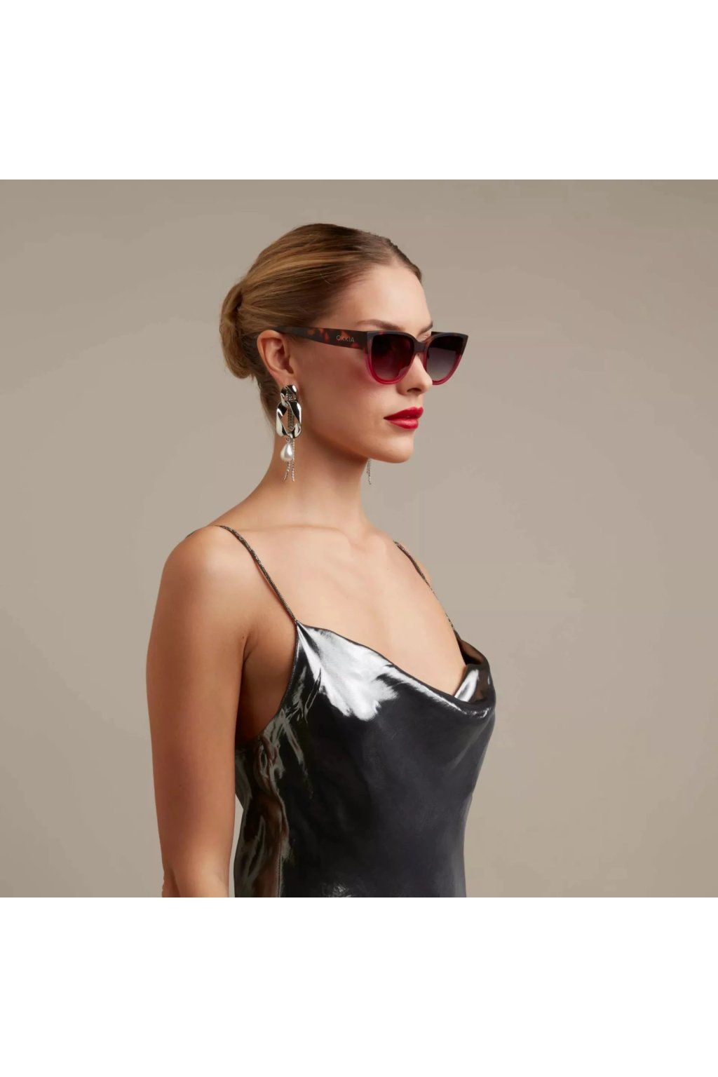 Elegantní brýle se zvednutými rohy přidávají na kouzlu a tajmeství. Svým soft touch povrchem a přechodovými čočkamy jsou tím správným doplňkem pro každý elegantní outfit. Barva obrouček Havana/růžová, čočky černé přechodové
