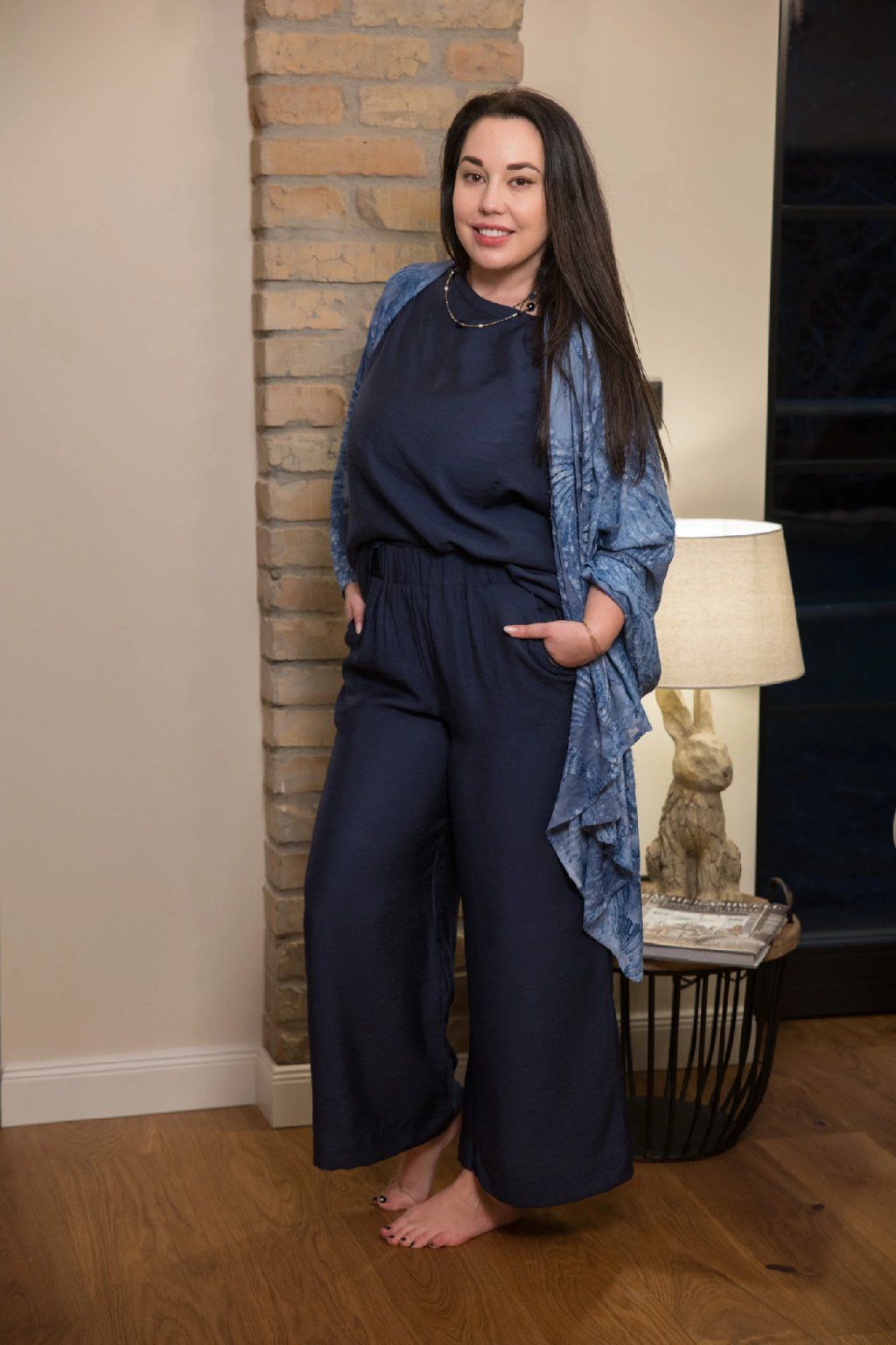 Top Hanna je lehký, volný a splývavý, ušitý z jemné viskózové tkaniny. V setu s kalhotami Hanna vytváří úžasný pohodlný a zároveň elegantní komplet na léto i pro slavnostní příležitosti.