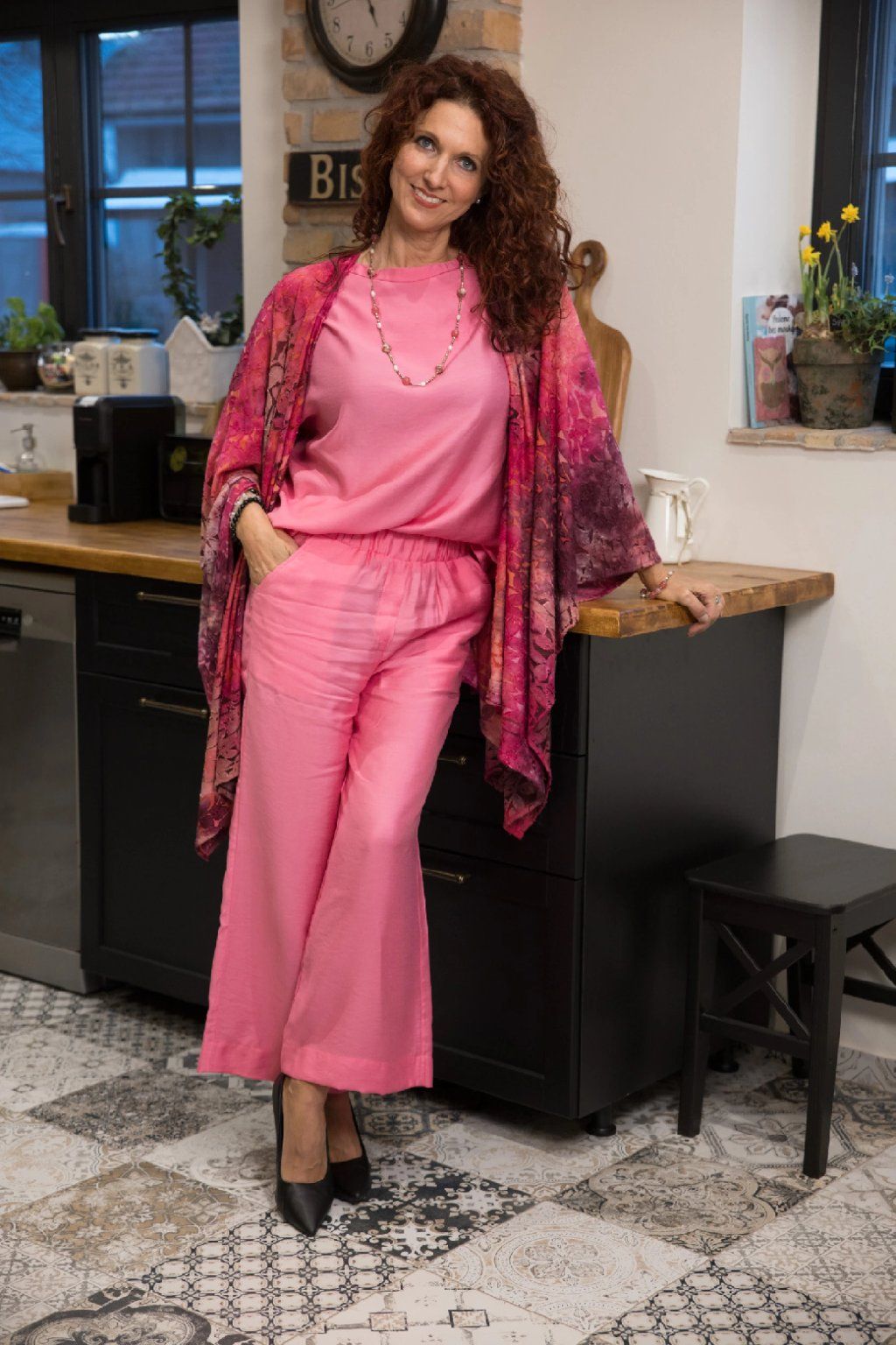 Volné kalhoty Hanna v ke kotníkům jsou ztělesněním ležérní elegance. Jemná viskózová tkanina s decentním leskem krásně splývá, je příjemná na dotek a ideální nejen pro teplé...