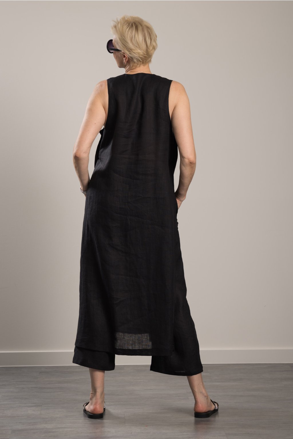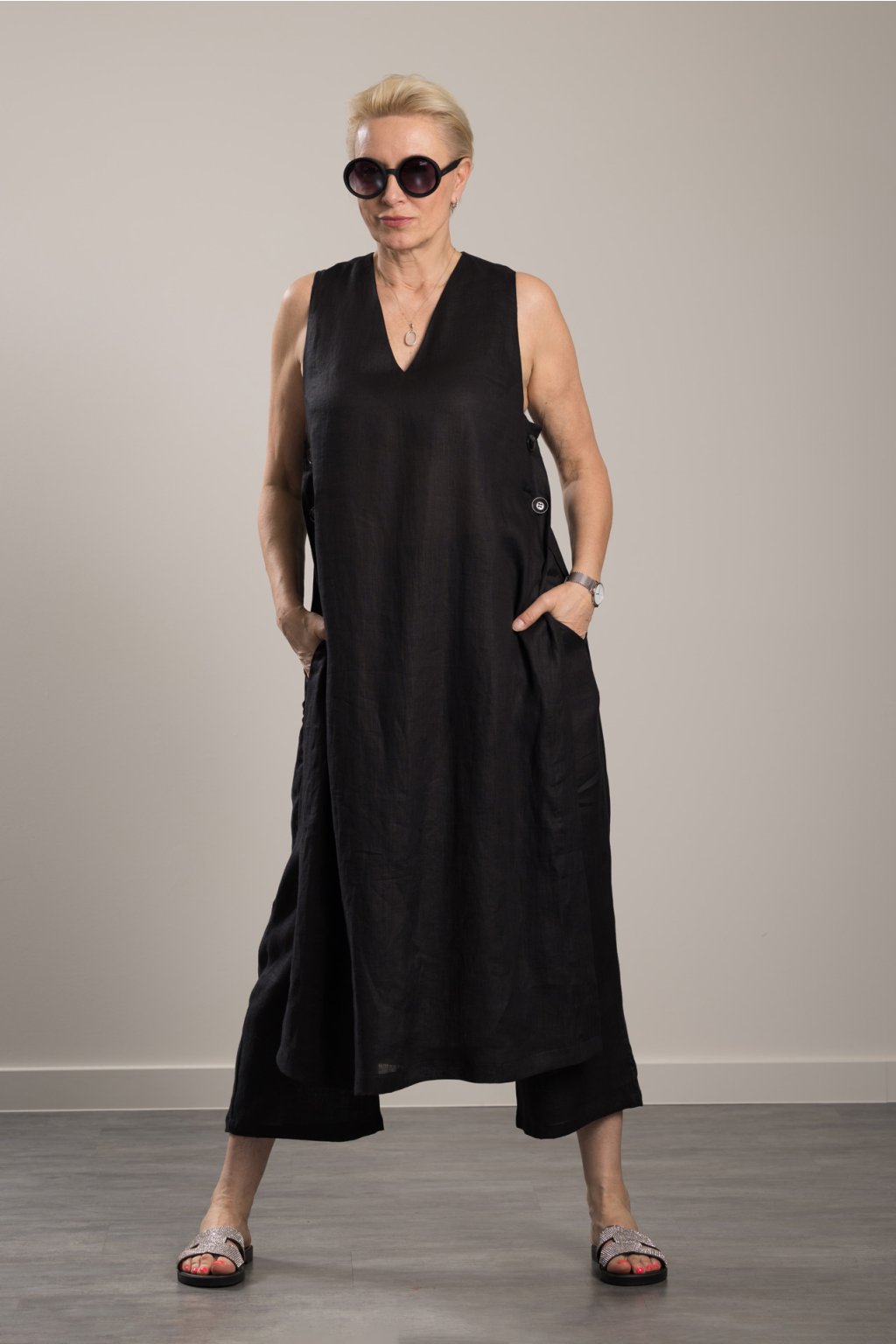 Tunika Lenny Linen Black Lněná tunika s rozparkem na knoflíky na bocích