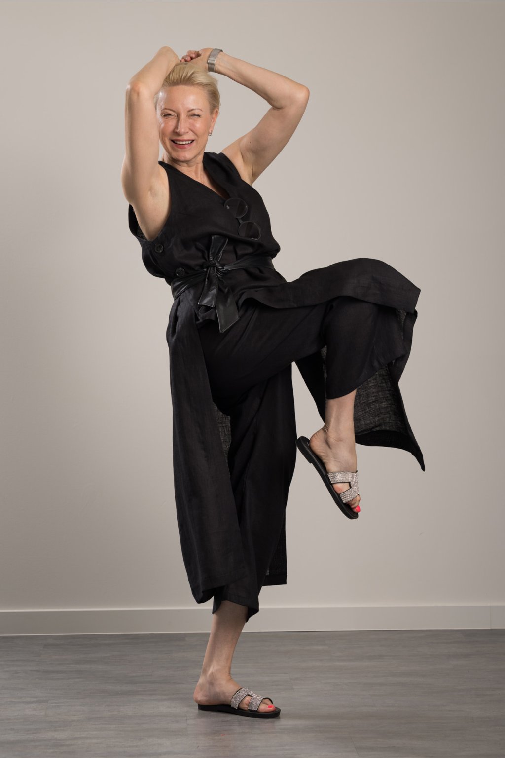 Objevte dotek přírody a dokonalou kombinaci elegance a pohodlí s naší lněnou tunikou Lenny Linen. Dlouhá tunika s vysokými rozparky na bocích a sofistikovaným zapínáním na každé straně na 2 knoflíky je sólistou v naší kolekci Linen. Poskytuje maximální pohodlí a je ideálním letním společníkem do práce i pro volný čas. Lze ji nosit s kalhotami Romy ze stejné kolekce i s naším koženým vázacím páskem, ale fantazii se meze nekladou!