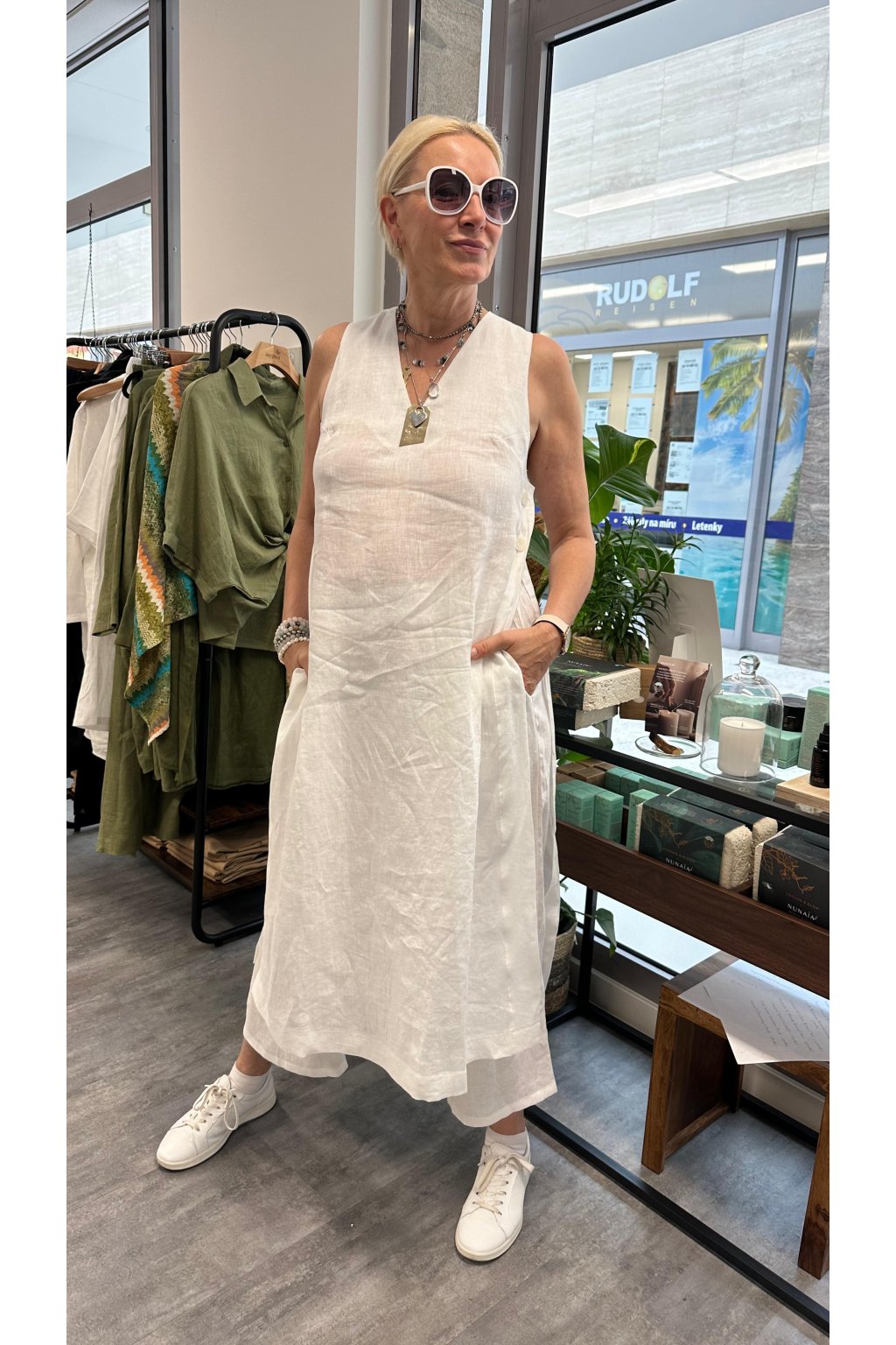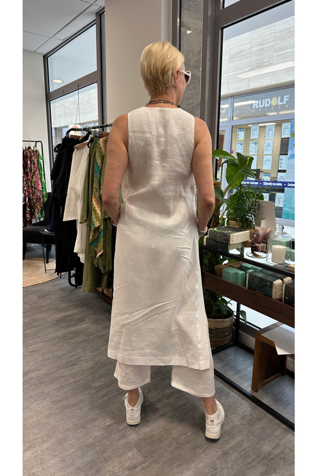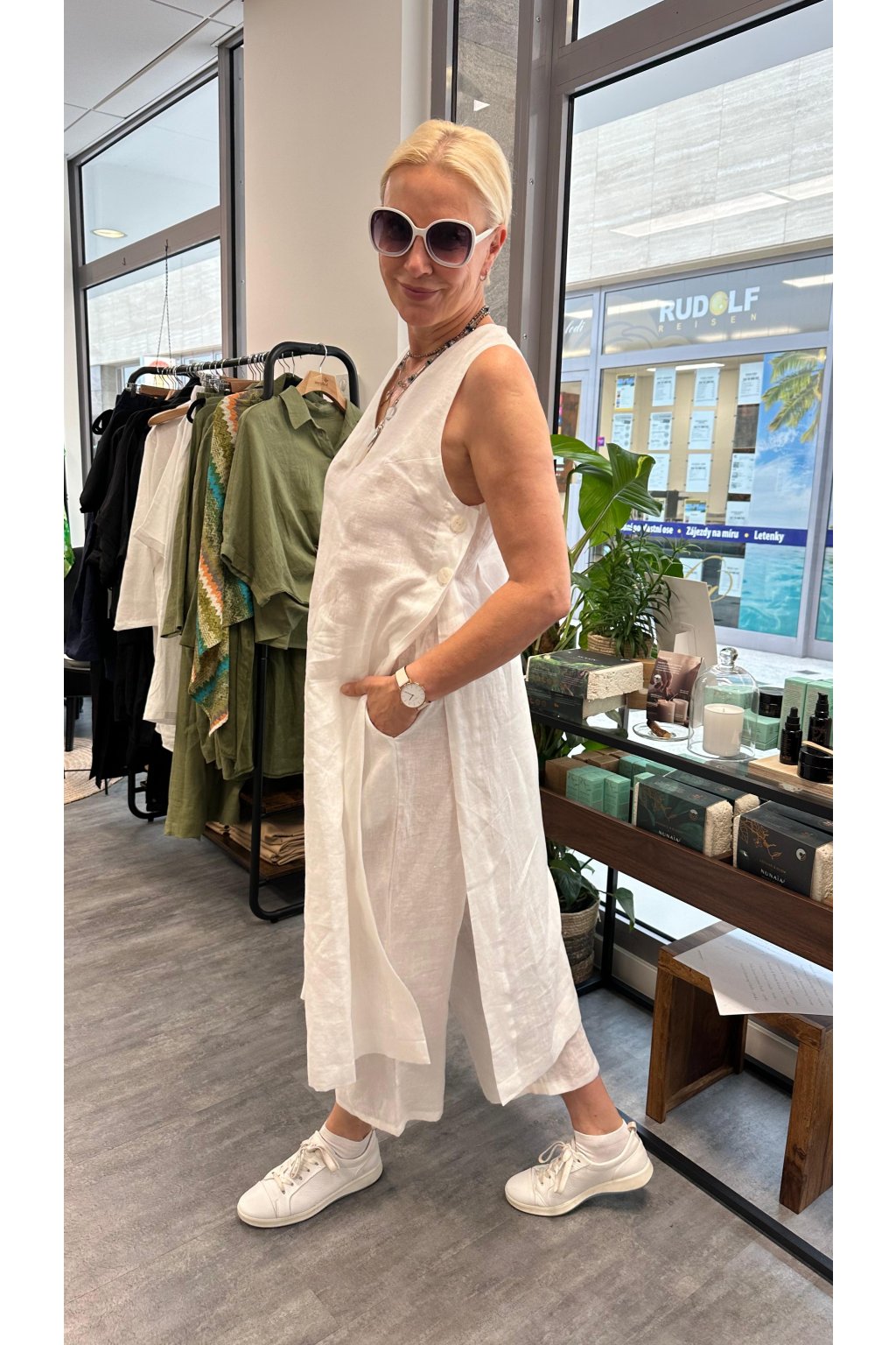 Tunika Lenny Linen White Lněná tunika s rozparkem na knoflíky na bocích